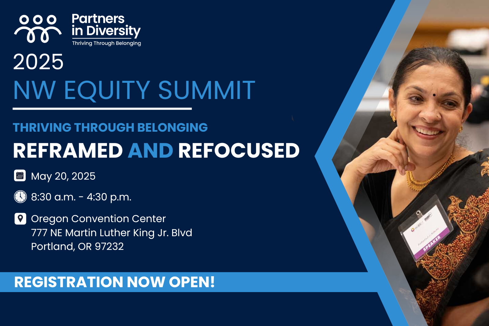 Belonging is the outcome of equity and inclusion. Partners in Diversity’s biennial NW Equity Summit is the region’s preeminent diversity, equity, inclusion, and belonging conference. It’s a chance to listen and learn from each other, share information, plan for the future, and build a sense of belonging.