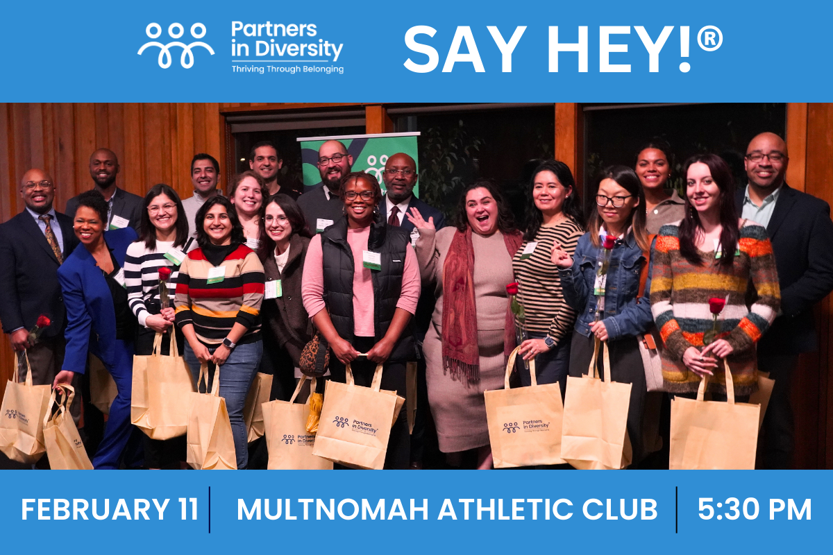 Say Hey! is the largest multi-cultural networking event in Oregon and southwest Washington. Each quarter, Partners in Diversity connects local businesses and community members with professionals of color who recently relocated to Oregon or southwest Washington. Recently relocated professionals of color (aka Honorees) are introduced during a special portion of the program.
